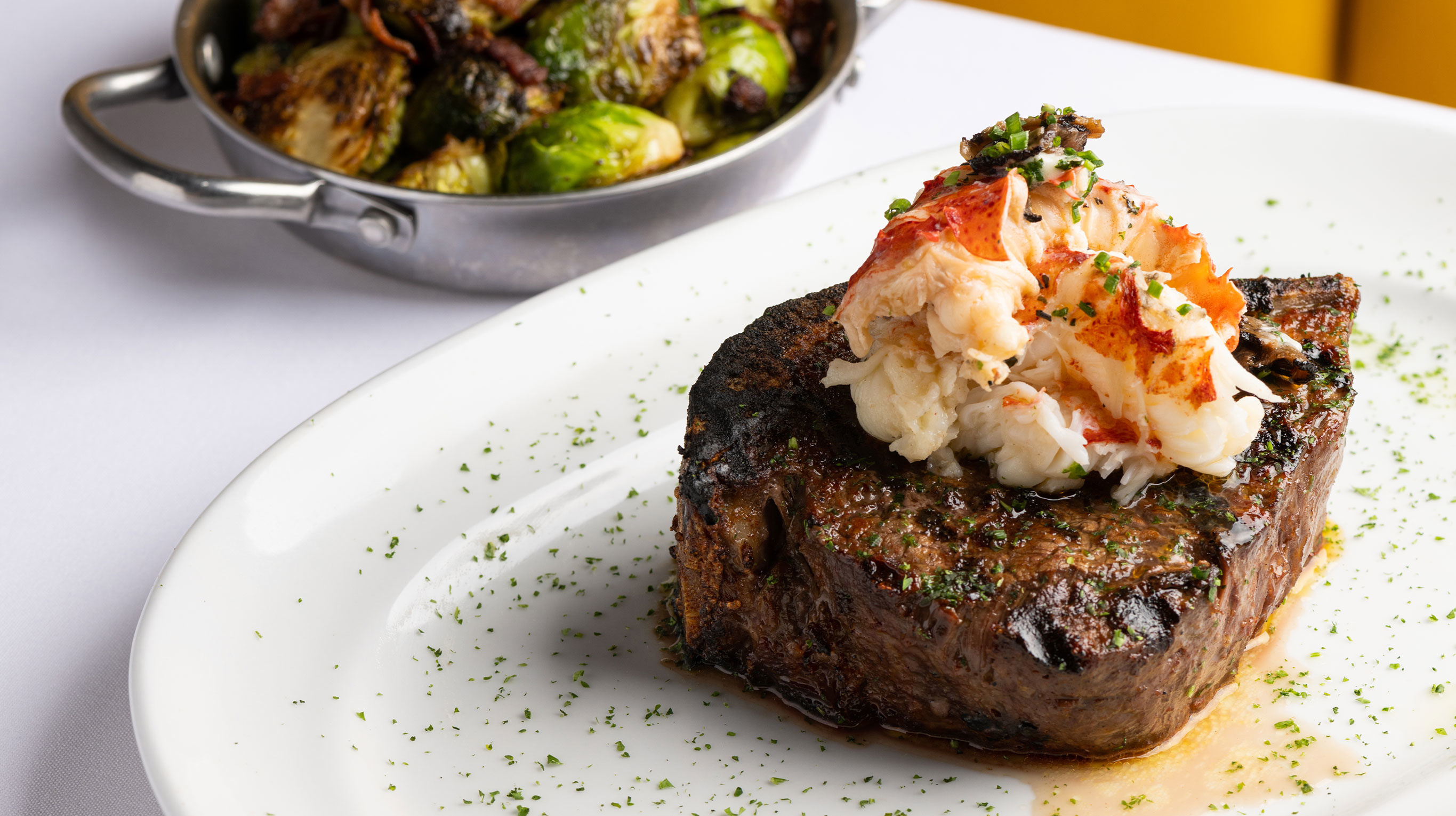 Among the most craveable appetizers and side dishes are caviar cones, chicken fried lobster tails, chef’s cut hanging bacon, and a chive + cream cheese stuffed hashbrown.